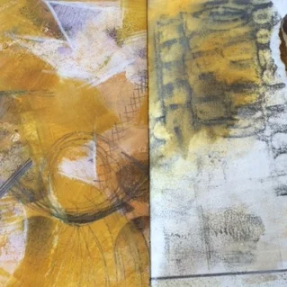 I recently ruptured my Achilles tendon, and had to have surgery. Those of you that know me know that I am not really great at sitting still (unless there is a glass of red wine in my hand and I am surrounded by my best friends). To say this was a challenge for me would be a large understatement. Once I surrendered to the reality of my situation, however, I knew that I had only one choice....to make art again. The ridiculous hiatus I was on had to end. Why not now?? I was safely tucked away under the care of my mom and within the walls of her beautiful home in Colorado. I set up an art space in the guest room and got to work. I painted every day, both in my journals and on these pages. I did not know exactly what my plan was, but I was processing each day, using these pages as a container. I used Arches Text Wove paper, Dylusions Inks, some old stencils I had laying around, a limited palette of Golden Fluid Acrylics, pens, pencils and anything else I could get my hands on! As the pages came to life, I realized a book was being born. I hadn't hand bound a book in ages, so it turned into a real project! I ended up making two of these in different hues. I will post the other one soon. It was a gratifying experience to channel all of my frustrations, musings, celebrations and healing in these books! In the end, this injury has been the greatest blessing in recent years. Here are a few spreads out of my book......